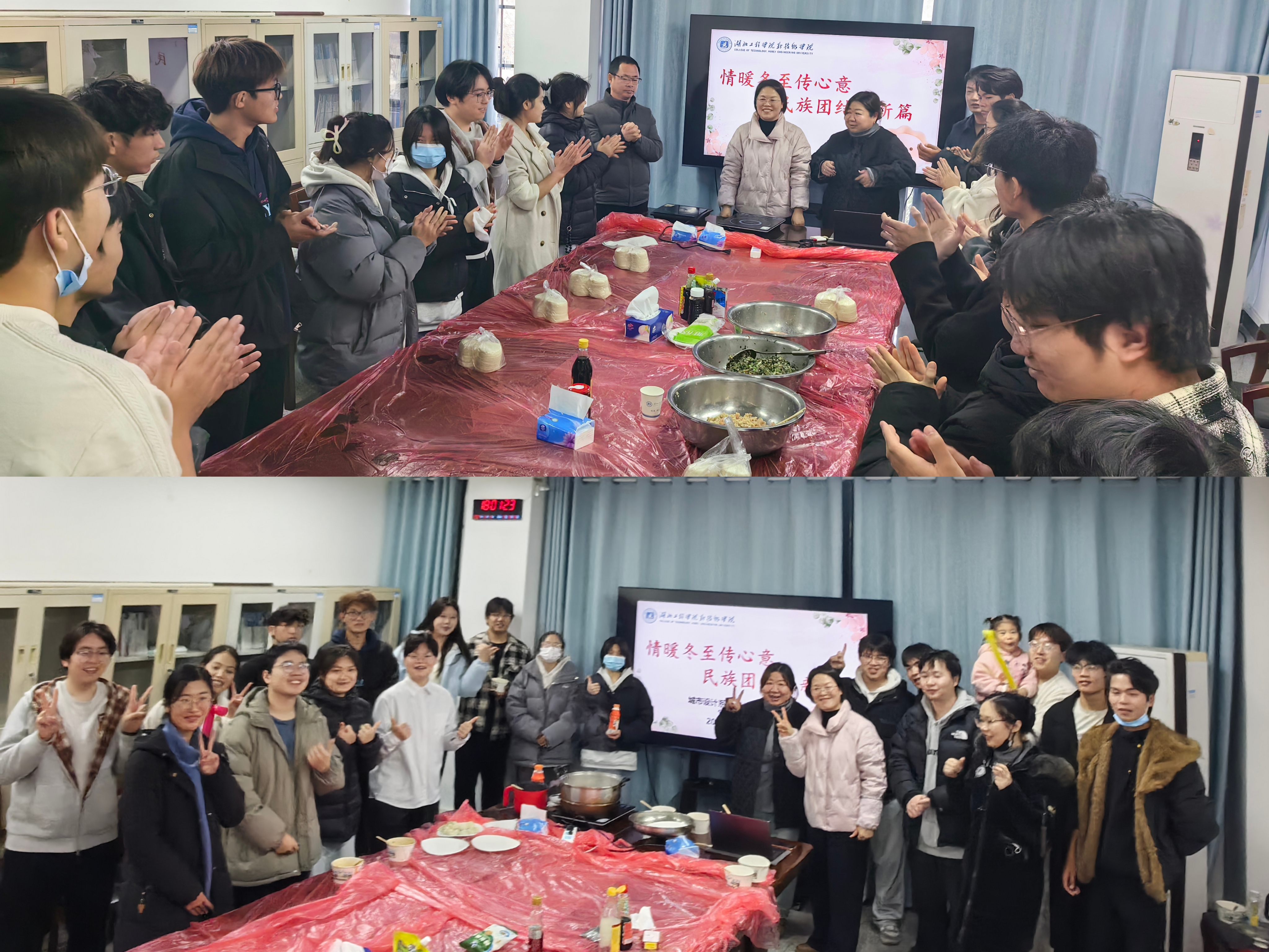 冬至临寒,暖意先行。12月19日下午,我系“砼心砼德”学生党员先锋队在系党员活动室成功举办“情暖冬至传心意 民族团结谱新篇”主题包饺子活动。活动特别邀请系内少数民族学生代表、教师代表及考研学子共同参与,以民俗相聚,以温情传意,向全体师生致以诚挚的节日问候与美好祝愿。