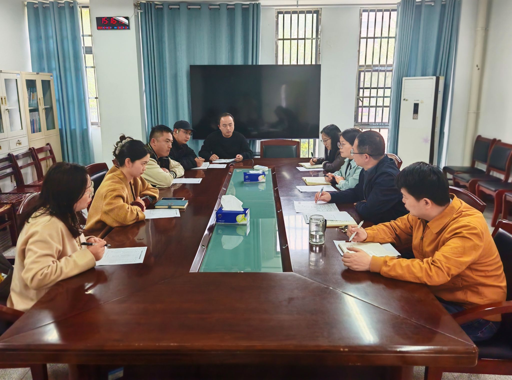 会上,系主任姚大飞传达学校4月份就业工作推进会精神,分享创新学分、毕业设计、实习管理及就业材料收集等工作经验,明确各环节时间节点与工作责任。分管教学副主任刘文彦强调毕业实习与就业的关联性,要求统筹推进两者工作、实现双向赋能。