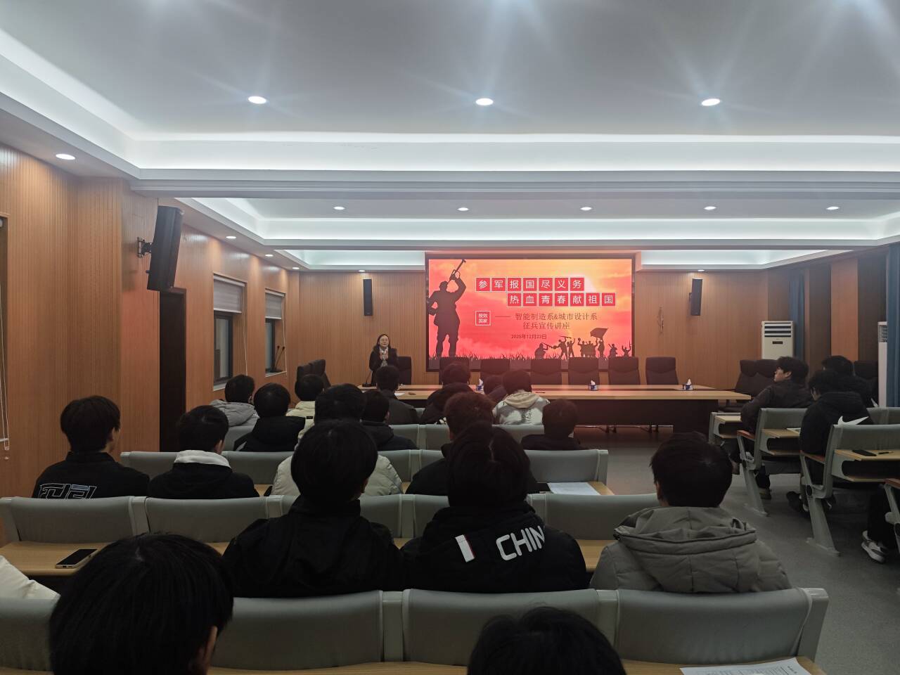 12月23日晚7时,城市设计系在科技楼212会议室成功举办了2026年春季征兵宣讲会,吸引了众多有入伍意向的同学参与。