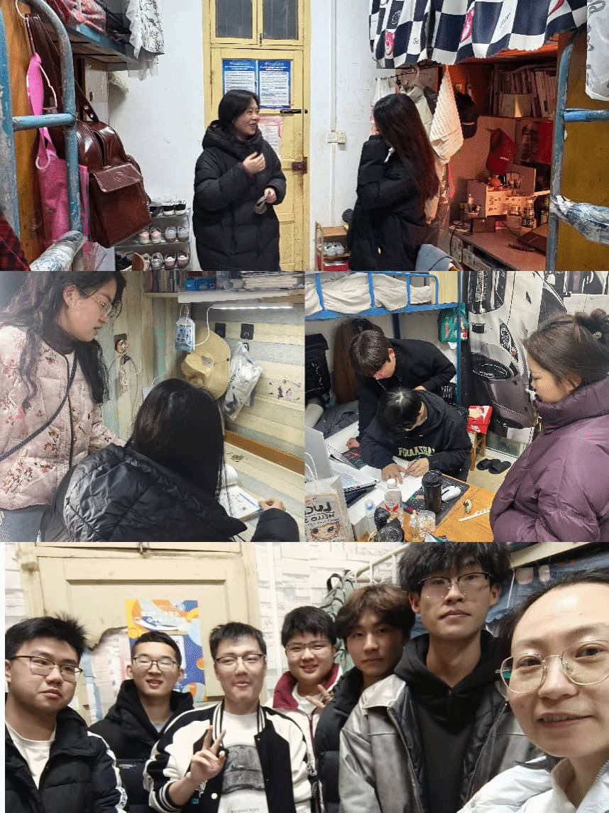 走访期间,陈友华副院长一行深入各宿舍,与学生亲切交谈,详细询问其寒假见闻、返校安全及新学期规划。针对“假期综合症”,他勉励学生及时收心归位,以饱满状态投入学习,明确目标、深耕专业,力争综合素质提升。同时,着重强调用电安全,要求学生排查宿舍隐患、勤开窗通风,增强电信网络诈骗防范意识,共建安全有序的居住环境。