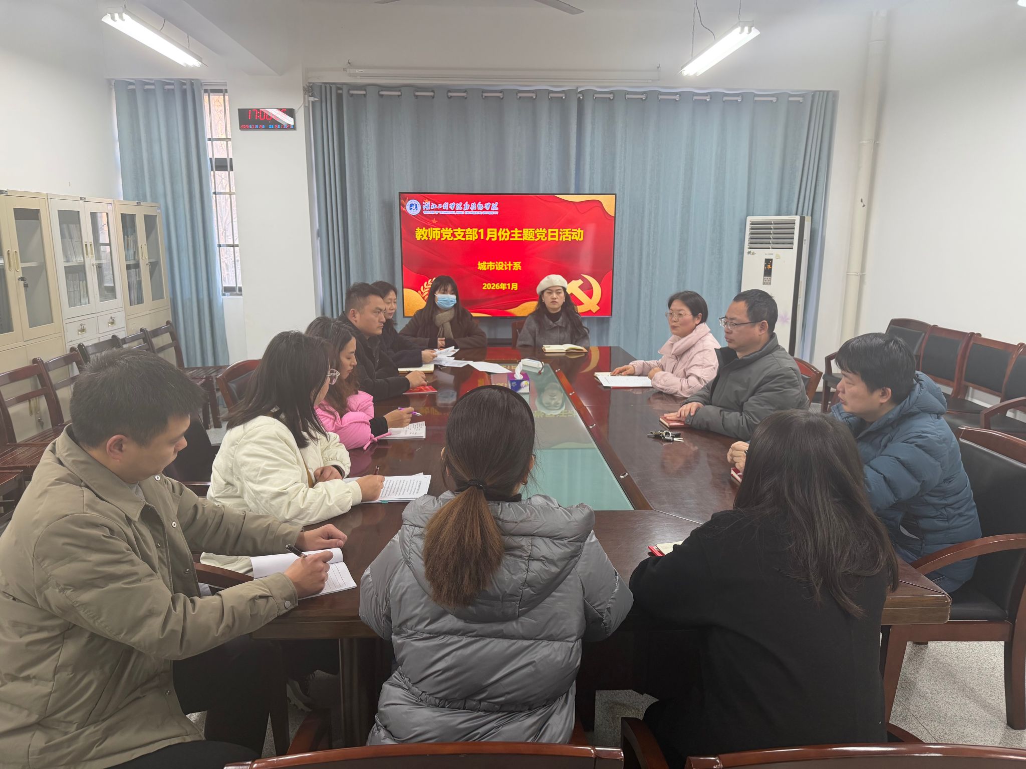 1月15日,城市设计系教师党支部在系会议室开展1月份主题党日活动,全体教师党员参加。