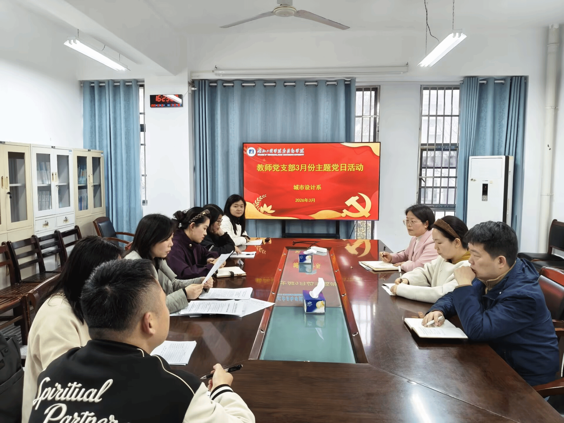 3月26日,城市设计系教师党支部在系会议室开展3月份主题党日活动,全体教师党员参加,党支部书记主持。
